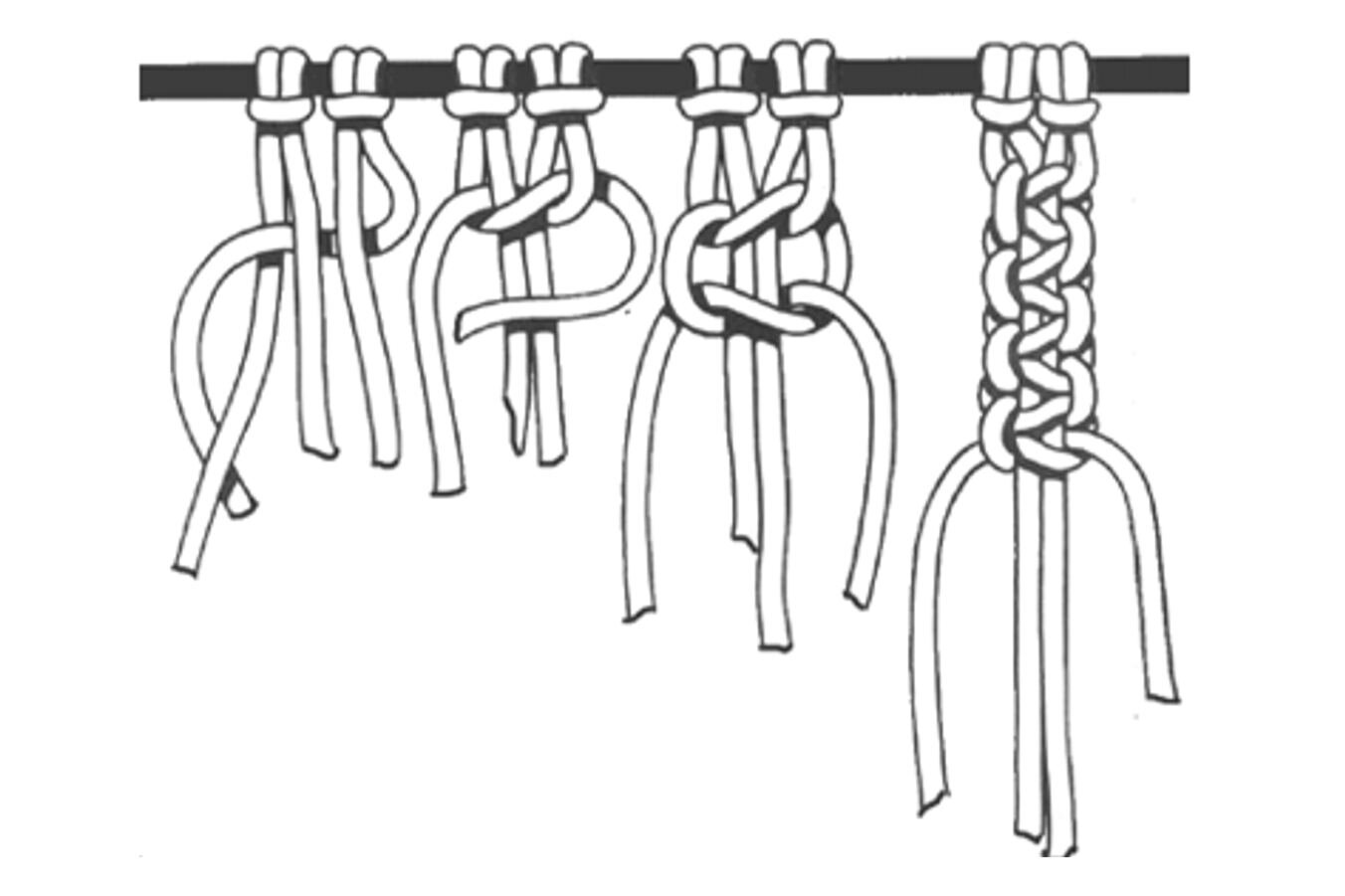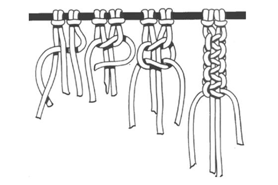 Tento poloviční tkalcovský uzel neustále opakujte, přičemž začínejte střídavě s levou a pravou zauzlovanou šňůrou.