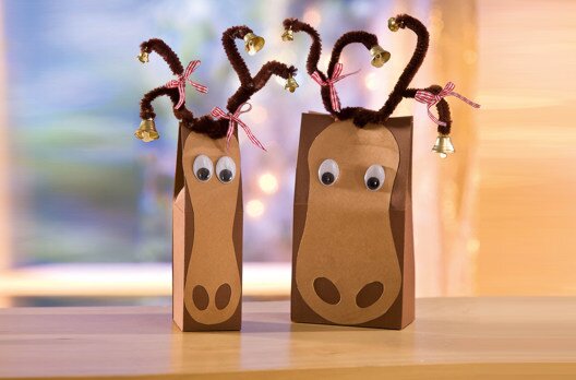 Abyste mohli krabičky s dárkem zapečetit, musíte nyní nůžkami propíchnout otvor v otvoru. Parohy přeložte napůl, zepředu prostrčte otvorem žinylkový drát a vzadu jej ohněte.