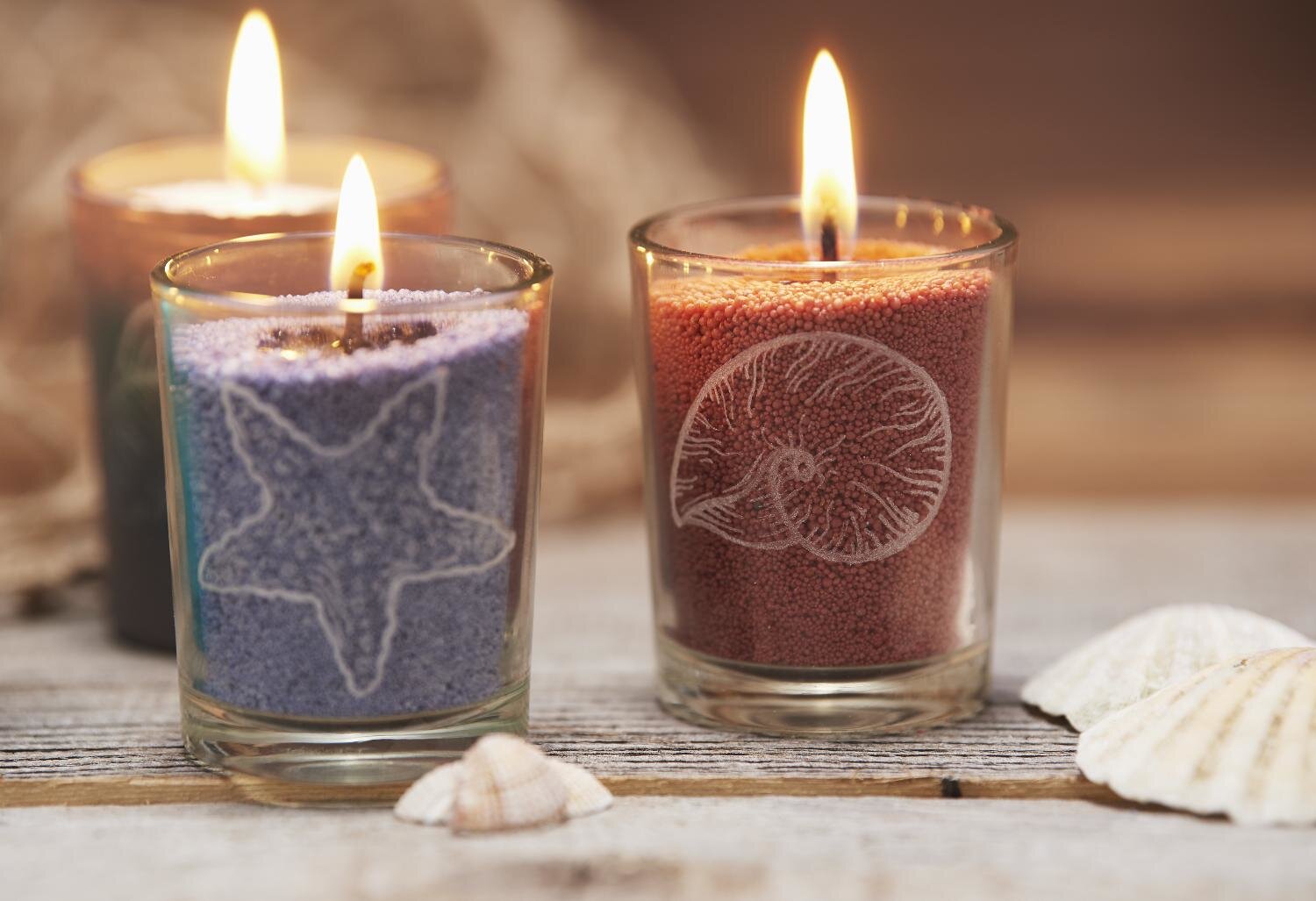Nakonec do středu umístěte knot svíčky a sklenici naplňte pískem na svíčky.