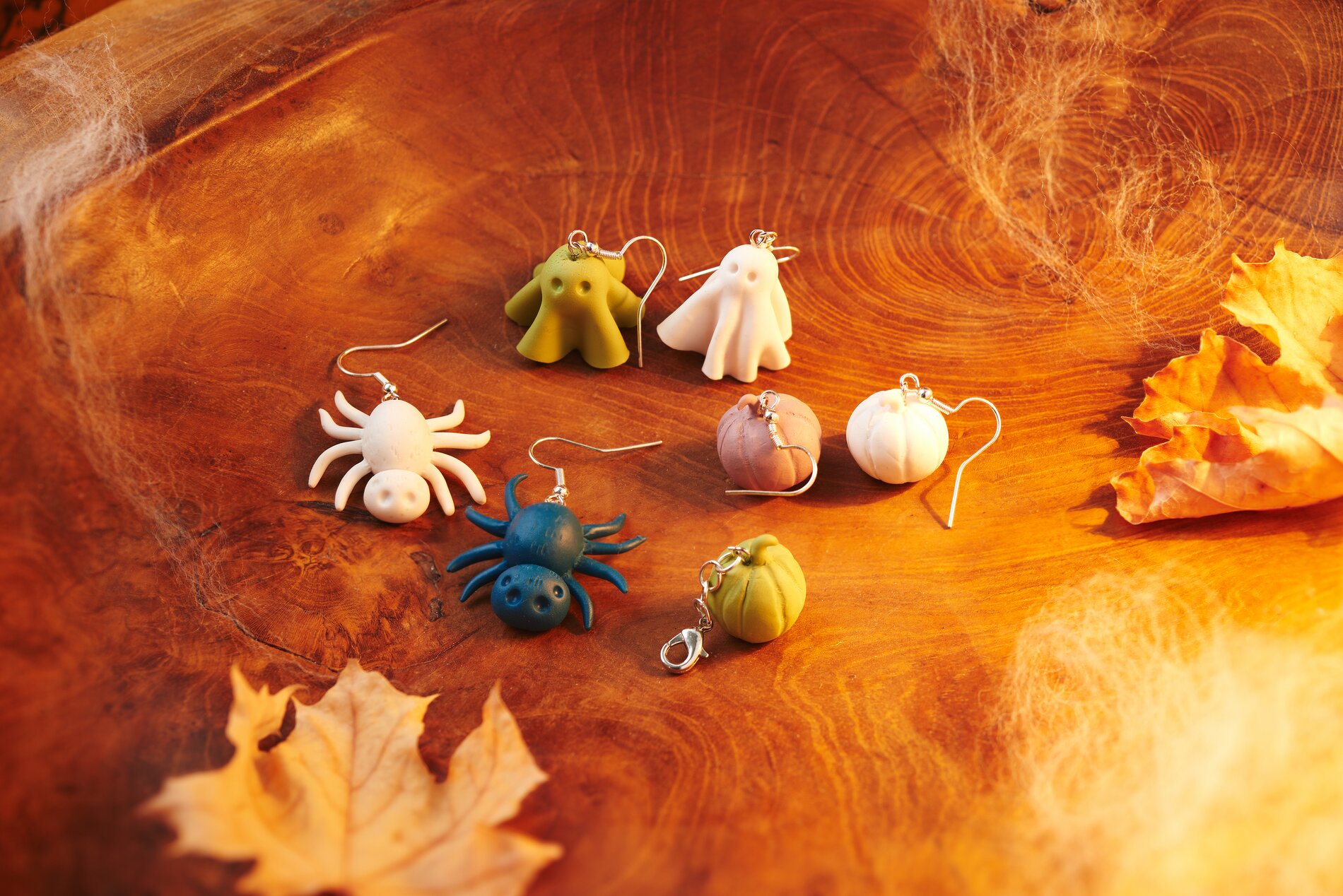 Než dáte figurky do trouby, udělejte do nich pomocí modelíny malý otvor, abyste na ně po ztvrdnutí mohli připevnit ozdobný háček. Do figurek můžete také vypíchnout oči. Modely vytvrzujte v předehřáté troubě při teplotě přibližně 110 °C po dobu asi 30 minut. Po vychladnutí můžete pomocí řemeslného lepidla připevnit ozdobné háčky a těšit se z vlastnoručně vyrobených halloweenských šperků.