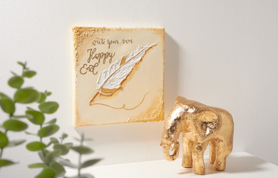 V prvním kroku nakreslete na nosítko o rozměrech 20 x 20 cm pírko. Pokud si nejste jisti, jak motiv nakreslit, použijte jako malířskou pomůcku šablonu "Amazonské peří". Pírko vymodelujte pomocí lehké strukturovací pasty a paletového nože, abyste vytvořili opticky opeřený reliéf. Poté naneste hrubou texturovací pastu do rohů obrázku jako vizuální akcenty.