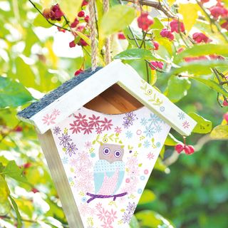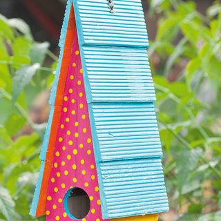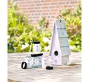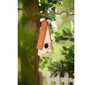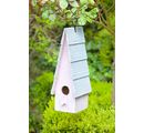 Poskytněte domov původním ptákům! Ptačí budka má díky snížené stupňovité střeše neobvyklý tvar, který jí navíc dodává působivý vzhled. Je to pomůcka pro hnízdění ptáků i zahradní dekorace. Zadní stěna má malý otvor a hnízdní budka má kovový kroužek na zavěšení.