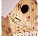 Obzvláště praktická jsou malá dvířka v zadní části hnízdní budky, která mají mosazný pant. Díky tomu lze box snadno vyčistit. Dodávaná jutová stuha s pěkným dřevěným korálkem umožňuje snadné zavěšení hnízdní budky na strom nebo na zeď.