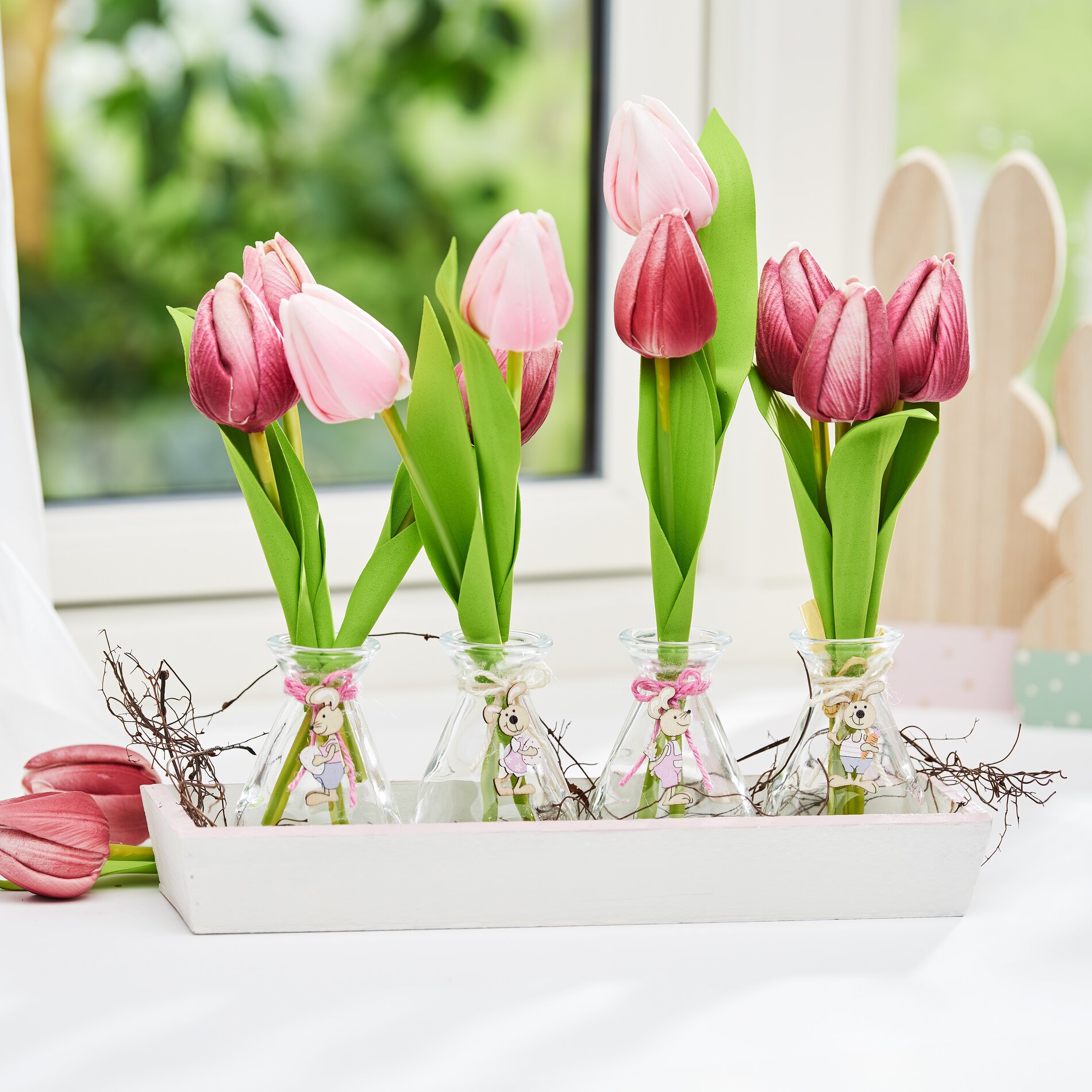 S trochou snahy si můžete doma vykouzlit malou stolní dekoraci, která do vašeho domova vnese jaro. A nejlepší na tom je, že tyto umělé tulipány jsou dekorativní, ale neuvadnou a lze je kdykoli vyměnit za sezónní květiny, takže vaše stolní dekorace zůstane nadčasově elegantní.