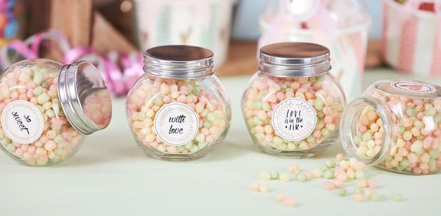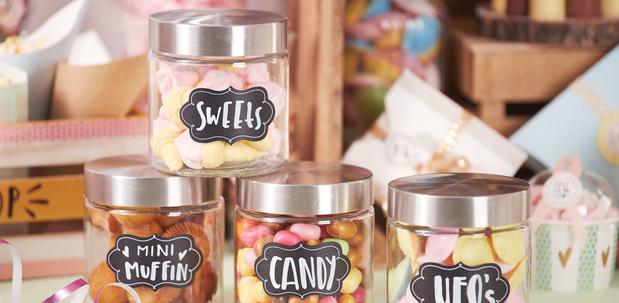 Máme velký výběr etiket, stuh, samolepek a dalších dekorativních předmětů, kterými můžete nádoby sladit s celkovým vzhledem vaší cukřenky.