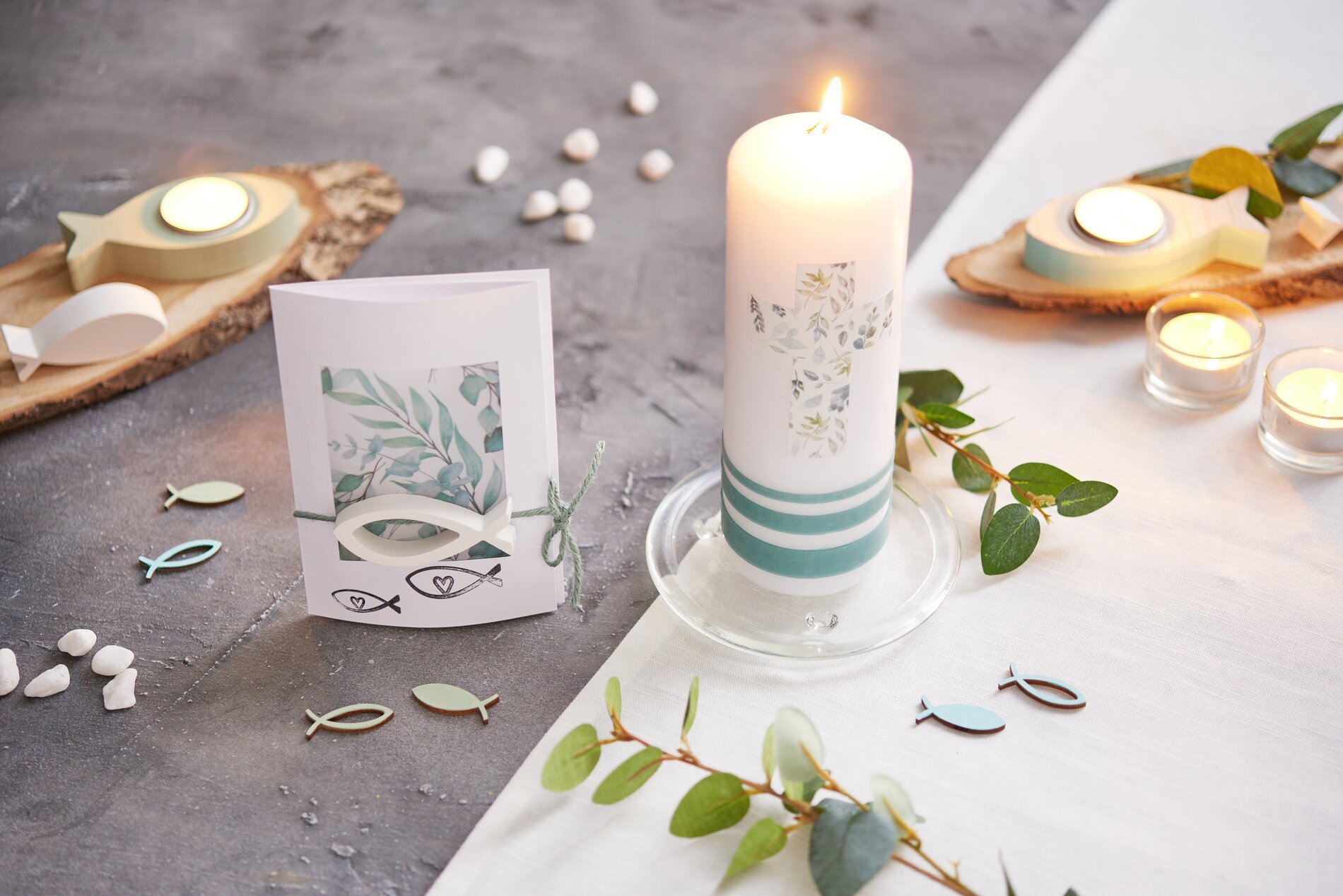 Začněte odléváním motivu ryby, který bude tvořit střed vašeho přání. Smíchejte asi dvě polévkové lžíce Raysinu s vodou, až získáte hladkou, krémovou směs. Formu naplňte jen částečně, abyste vytvořili plochý odlitek. Rybu nechte asi 30 minut zaschnout.