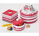 Kartonové krabice VBS "Round" v bílé barvě jako sada 12 kusů. Univerzální krabice z bílého kartonu v různých velikostech jako výhodné balení. Rozměry krabiček se pohybují od průměru cca 15 cm a výšky cca 8 cm po průměr cca 4,5 cm a výšku cca 2 cm. Krabičky lze proto stohovat na sebe nebo je vkládat do sebe.