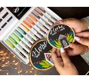 Prostě skvělá kolekce pro vytváření kvalitních obrázků, dárkových visaček, přáníček a mnoha dalších dekorací. Tato sada vám nabízí širokou škálu možností aplikace a pigmentová štětcová pera jsou dvakrát účinnější než běžná pera s vláknovým hrotem. Aplikace je velmi jednoduchá, stačí fixy protřepat, dokud se barva v peru dobře nepromísí, a můžete začít. Barvy lze kombinovat, zesvětlovat a míchat. Barevných přechodů dosáhnete pouhým dotykem hrotů nebo přímo na malovaném povrchu. Vysoce kvalitní sada, která otevírá mnoho tvůrčích možností.