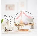 Robustní kovová konstrukce zaručuje, že Fridolin zůstane věrným společníkem pro vaše kreativní projekty po všechna roční období. Ideálně umístěný na stupínku nebo komodě přitáhne krásný zajíček pozornost všech a doplní každé velikonoční aranžmá.