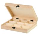 Tato truhla na čaj ze surového dřeva s odklápěcím víkem a 9 přihrádkami nabízí dostatek prostoru pro uložení čajových sáčků. Vnitřní rozměry přihrádek jsou přibližně 7 x 6 cm. Tuto dřevěnou truhlu si můžete ozdobit, jak se vám zlíbí. Nechte se inspirovat našimi motivy slaměného hedvábí a dodejte své truhličce na čaj osobní nádech. Tuto malou dřevěnou truhličku můžete také proměnit v módní předmět s ošuntělým vzhledem nanesením barev technikou šmouhování.