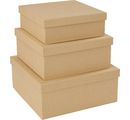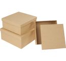 Skvělá sada tří krabic z odolného kartonu v přírodní barvě. Čtvercové krabice v přírodní barvě ve třech různých velikostech, které lze do sebe vkládat.