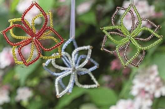 Nyní navlékněte korálky na další hvězdicový drátek a konec drátku navlékněte do očka prvního korálkového drátku a spojte očkem.