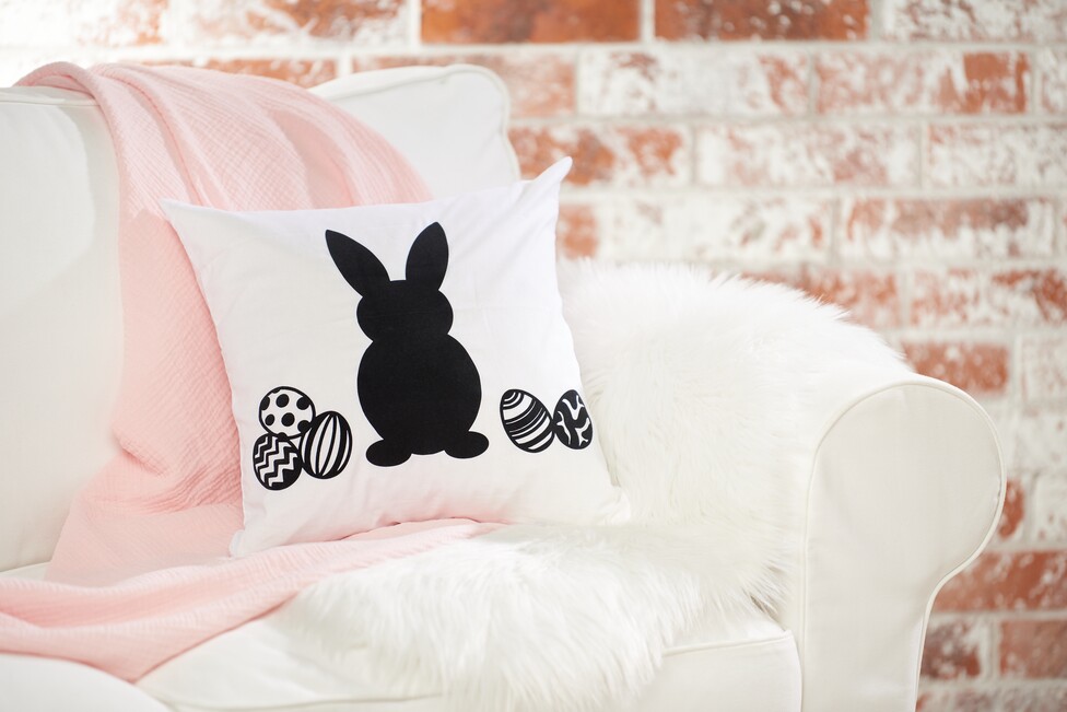 Připravte lis EasyPress 3 nastavením teploty 160 °C a doby lisování 15 sekund pro fólii Tubitherm flock. Povlak polštáře položte na podložku EasyPress a nejprve jej 15 sekund lisujte. Tím se tkanina vyhladí a připraví na aplikaci motivů.