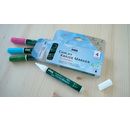 Sada KREUL "Křídový popisovač - dekorace oken " se skládá ze čtyř per a je vhodná zejména k dekorování oken a jiných skleněných povrchů. S hrotem širokým přibližně 2 až 3 mm lze velmi dobře malovat zejména nápisy.