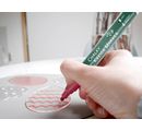 Křída na vodní bázi má matný, krycí a světlostálý nános. Je vhodná zejména na okenní tabule, ale přilne i na dlaždice, tabule a kov. Před aplikací se doporučuje odstranit z povrchu zbytky, jako je prach a mastnota. K tomu postačí jednoduchý čistič skla. Motivy můžete kdykoli otřít vlhkým hadříkem a znovu nakreslit.