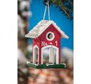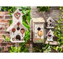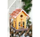 Krmítko VBS"Woody" ze dřeva. Krmítko si můžete přizpůsobit podle vlastních představ. Má závěsný popruh pro zavěšení na stromy nebo na plot zahrady. Otvor pro ptáky má průměr přibližně 3 cm.
