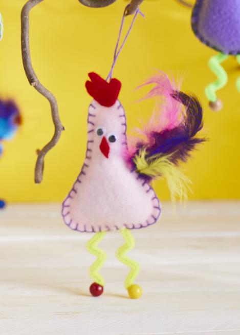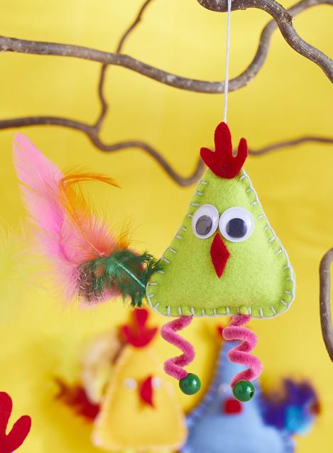 Chcete si kuřátka vyrobit jako přívěsky? Žádný problém - jednoduše navlékněte tenkou nit do šicí jehly a zasuňte ji do horní části zadní části kuřátka. Nyní oba konce nitě zauzlujte, abyste vytvořili smyčku nebo jednu nit pro zavěšení. Můžete si ozdobit velikonoční kytici!