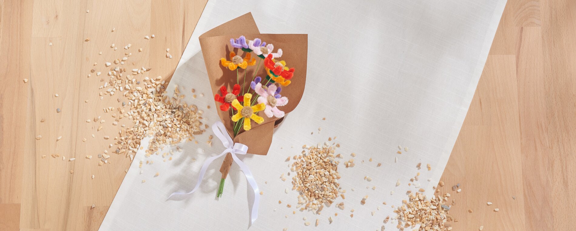 Chcete-li celek zkrášlit, přilepte kolem stonku kousek zeleného žinylkového drátku, aby se skryla tečka lepidla.