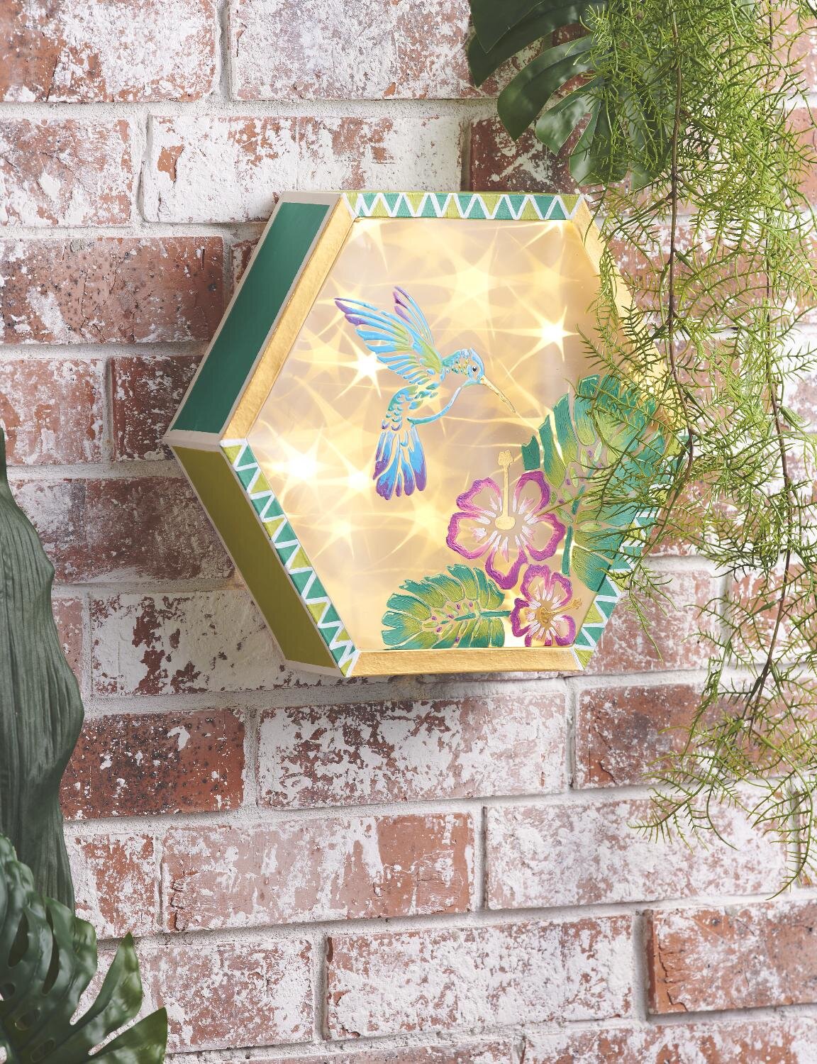 Krok 3:Nyní můžete fólii s lampou navrhnout pomocí šablon, barev a dalších materiálů. V našem příkladu jsme zkombinovali šablonu "Kolibřík" se šablonou "Ibišek". Šablony je nejlepší nastříkat