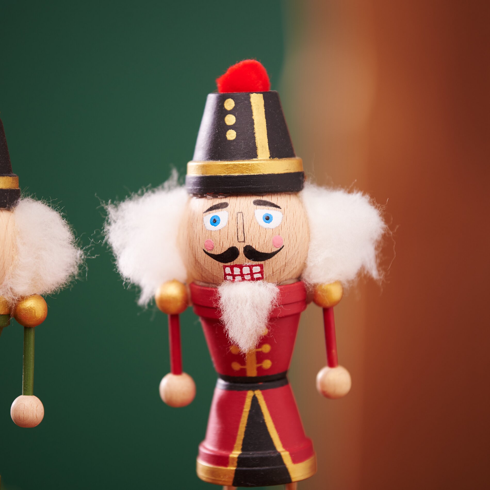 2. Velké a malé hliněné hrnce natřete černou barvou. Pomocí bambusové špejle přidejte na velké hliněné hrnce - tj. klobouky - zlaté akcenty, jak je znázorněno na fotografii. Plochy podlepte maskovací páskou, aby byly okraje čisté. Na klobouky nalepte bambuli.