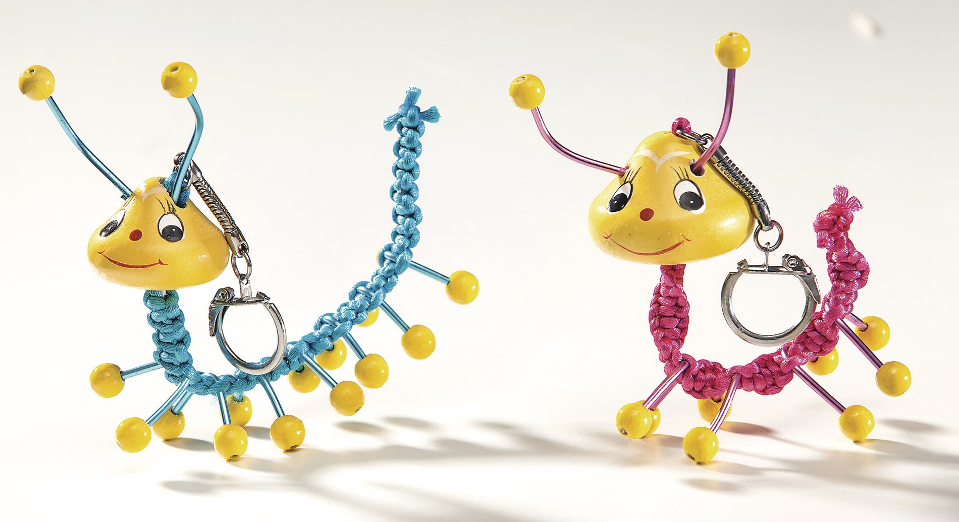 Na konce nožiček přilepte pomocí bleskového lepidla žluté dřevěné korálky.