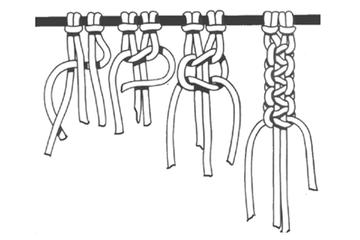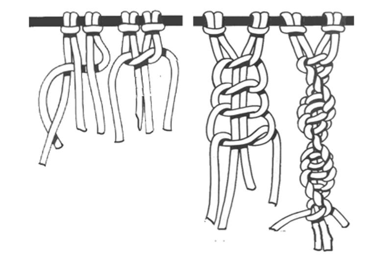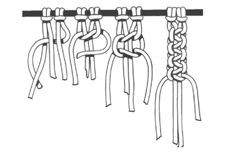 Tento poloviční tkalcovský uzel neustále opakujte, přičemž začínejte střídavě s levou a pravou zauzlovanou šňůrou.