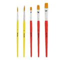Sada obsahuje 3 ploché štětce ze syntetických vlasů ve velikostech 8, 12 a 16 a 2 kulaté štětce ze syntetických vlasů ve velikostech 6 a 10.