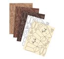 Fotokarton je vyřezán laserem a drážkován, takže není nutnévystřihování a skládání . Miniaturní sáčky je třeba pouze slepit z boku a připevnit uši a mašle. Přidejte stužku a malé pytlíčky se zajíčky jsou hotové.