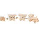 Roztomilá miniaturní dřevěná železnice skládající se ze zámku a tří přívěsů. Vláček má celkovou délku cca 9,7 cm a výšku cca 0,9 - 1,6 cm. Šířka je přibližně 1,5 cm.