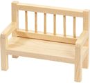 Miniaturní lavička má délku přibližně 8 cm, šířku přibližně 3,5 cm a výšku přibližně 6 cm. Vyrobeno z neošetřeného dřeva pro volný design.