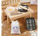 Miniaturní pytlík na mouku je asi 4,5 cm vysoký a asi 3 cm široký. Je vyroben z polyesteru. Balení obsahuje 2 kusy.