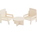 Přeměň svůj domeček pro panenky ve stylovou oázu útulnosti s miniaturní sadou"Obývací pokoj". Tato sada 11 překližkových dílků vám poskytne vše, co potřebujete k vytvoření příjemného obývacího pokoje.