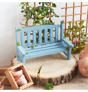 5. Malování miniatur a navrhování květenství Nyní je čas natřít miniaturní lavičku "Lars" a miniaturní terakotové květináče podle vašich představ. Než budete pokračovat, nechte tyto prvky zcela zaschnout. Poté odřízněte části větviček květenství a naaranžujte je do miniaturních terakotových květináčů. Vše zajistěte horkým lepidlem, aby vše stabilně drželo.