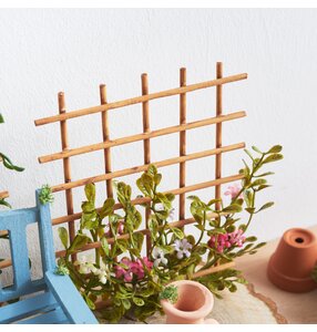 3. Vybarvení mřížky na rostliny a mřížky na ovoce Chcete-li miniaturní zahrádce dodat přírodní vzhled, smíchejte trochu hnědé barvy s vodou. Touto směsí natřete mřížky na rostliny a miniaturní dřevěné schůdky na ovoce a nechte je zcela zaschnout. Zředěná barva zajistí, že struktura dřeva zůstane viditelná, a dodá dílům autentický a přirozený vzhled.