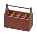 Hnědá miniaturní krabička na nářadí je vyrobena ze dřeva a je asi 4,6 cm dlouhá, asi 2,4 cm široká a asi 4 cm vysoká. Má osm přihrádek na miniaturní nářadí.