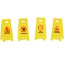 Sada stojánků na miniatury se skládá ze 4 žlutých stojánků na kreativní dekorace v miniaturních světech. Plastové stojánky se symboly a nápisy jsou cca 4 cm vysoké a cca 2 cm široké.