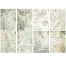 Objevte kouzelný svět Motiv rýžový papír backgrounds "Herbarium Silvae"! Tato sada 8 kusů vás zavede do kreativní oázy, která vaší fantazii neklade žádné meze. Složité vzory s nápisy a rostlinnými motivy vám nabízejí nespočet možností, jak zkrášlit své řemeslné projekty.