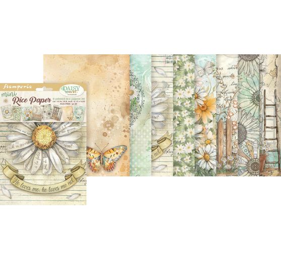 Oživte svou kreativitu s Motiv rýžový papír sada sortiment "Daisy Art"! Tato okouzlující sada 8 kusů vás přenese do světa plného rozkvetlých sedmikrásek a veselých motýlů. Skvěle se hodí pro všechny vaše kreativní projekty, od scrapbookingu a blahopřání až po balení dárků. Slaměné nitě s motivem se snadno trhají, stříhají nebo používají vcelku, ideální pro ubrouskovou techniku a decoupage.