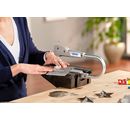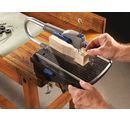 Lze s ním řezat nejen rovně, ale i v obloucích o velkém průměru. K dispozici jsou také vodicí lišty a paralelní vedení pro řezy do hloubky 18 mm, které jsou rovněž možné. Volnoběžné otáčky činí 1 500 až 2 250 otáček za minutu. Příslušenství lze rychle vyměnit díky páce. Bez problémů můžete řezat různé materiály, jako je dřevo a plast. Přímočará pila lze také odejmout, takže přístroj lze použít jako ruční nářadí pro mobilní práci. Vibrace činí 2,5 m/s². Akustický tlak je 77,3 dB(A) a akustický výkon 88,3 dB(A).