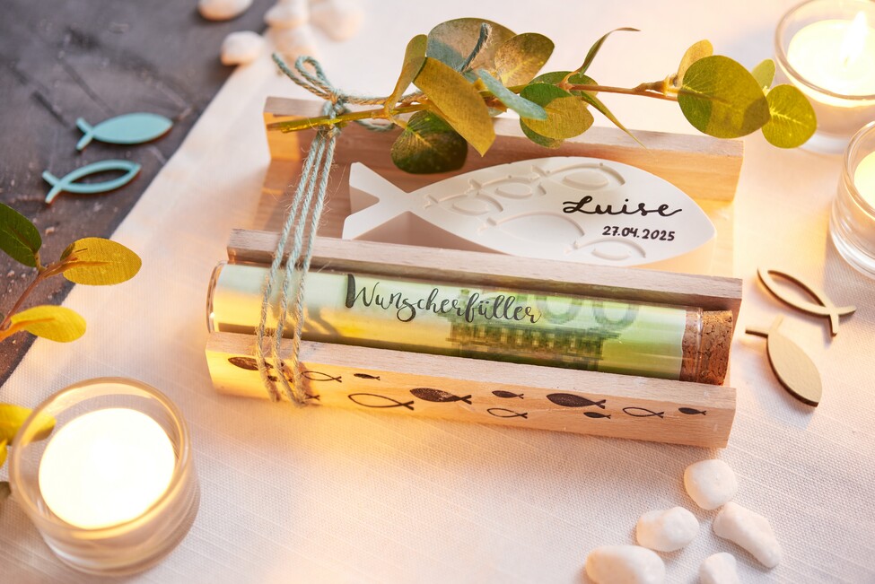 Na základnu z dřevěných bloků umístěte vytvarovanou rybu. Tak uvidíte, kde je třeba přilepit druhý blok jako rám.