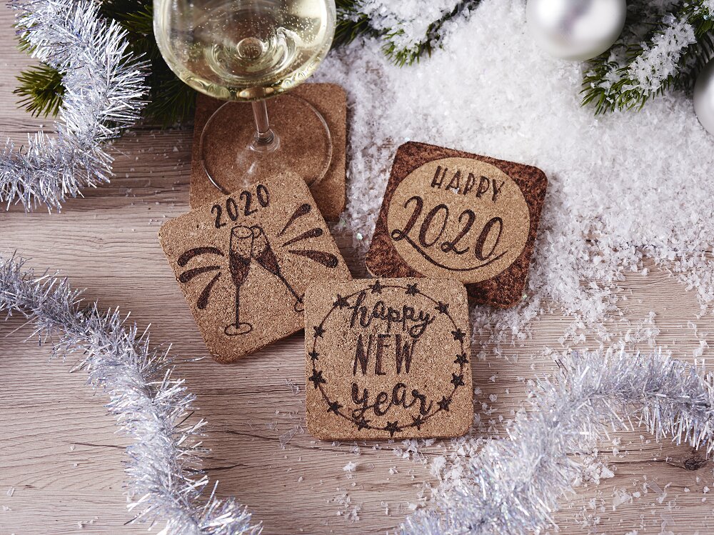 Ať už se jmény hostů oslavy, vtipným výrokem nebo obrázkem, který se hodí k Silvestru - tyto korkové podtácky nabízejí neuvěřitelně mnoho prostoru pro personalizaci. Na korkové podtácky můžete tužkou vybarvit požadovaný motiv nebo výrok. Tip: Pokud se necítíte dostatečně jistí, abyste nápisy na povrch psali ručně, můžete si požadovaný nápis nebo motiv vytisknout a přenést na podtácky pomocí grafitového papíru.