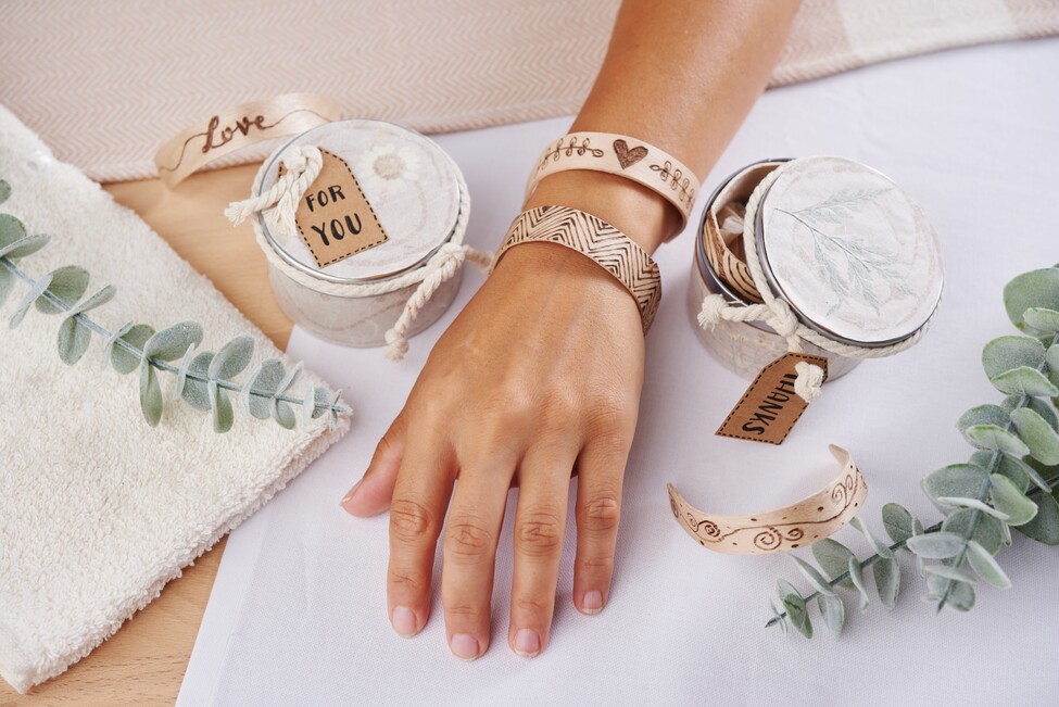 Poté vložte dřevěné špachtle do vroucí vody. Nechte je tam alespoň 1 hodinu. Nyní je opatrně vyjměte z vody a umístěte je do kulatého otvoru, aby uschly (nejlépe přes noc). K tomu se nejlépe hodí sklenice, hrnek nebo váza, v závislosti na velikosti zápěstí.