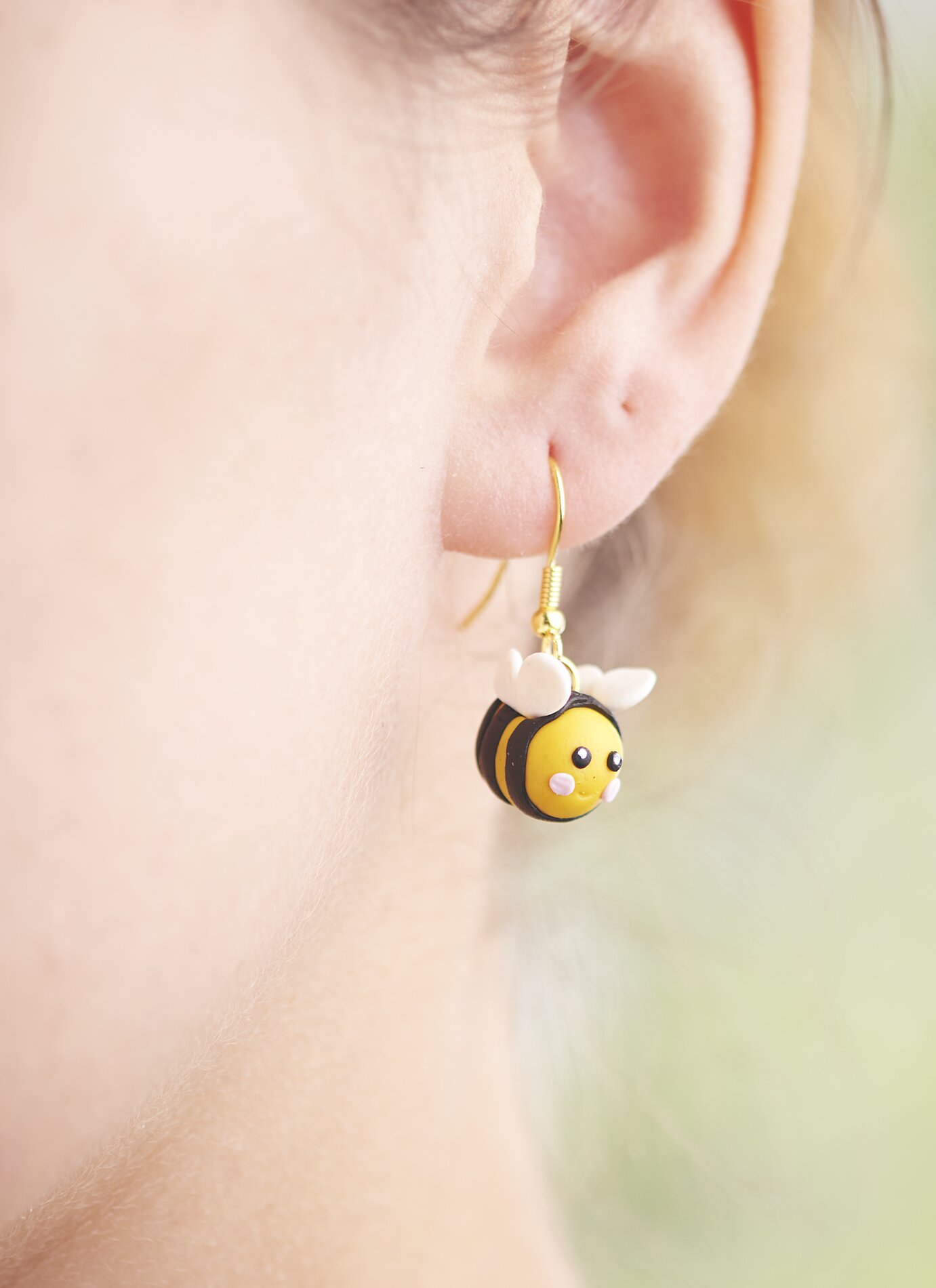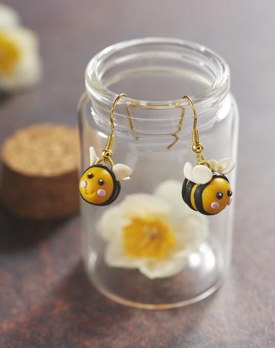 Bílým permanentním fixem přidejte do očí bílé světelné tečky. Na kroužky připevněte háčky na uši.