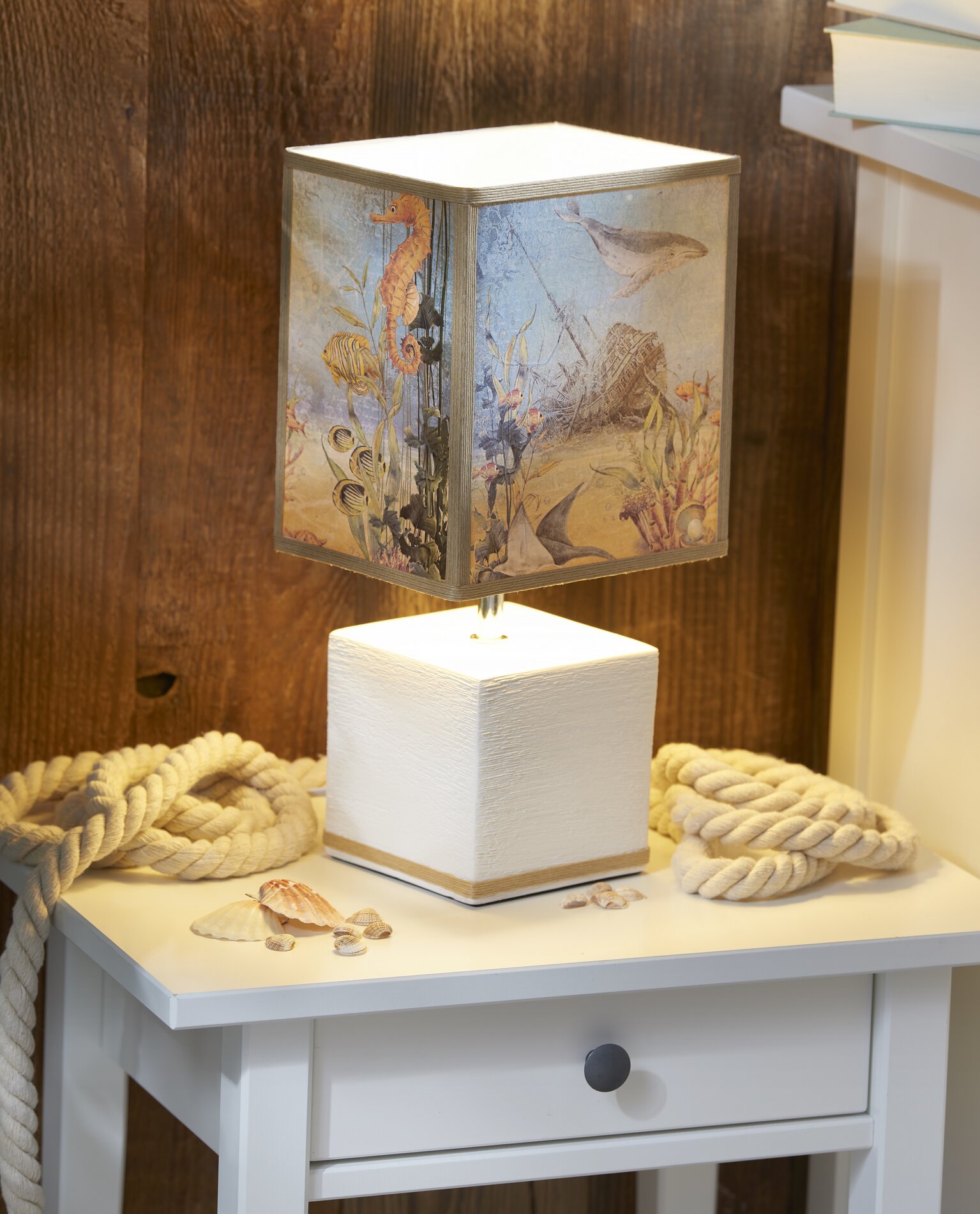 Poté prořízněte slaměnou nit s motivem. Část slaměné nitě s mořským koníkem přilepte na krátké strany stínidla. Tato část slaměného hedvábí s motivem musí být široká 13 cm.
