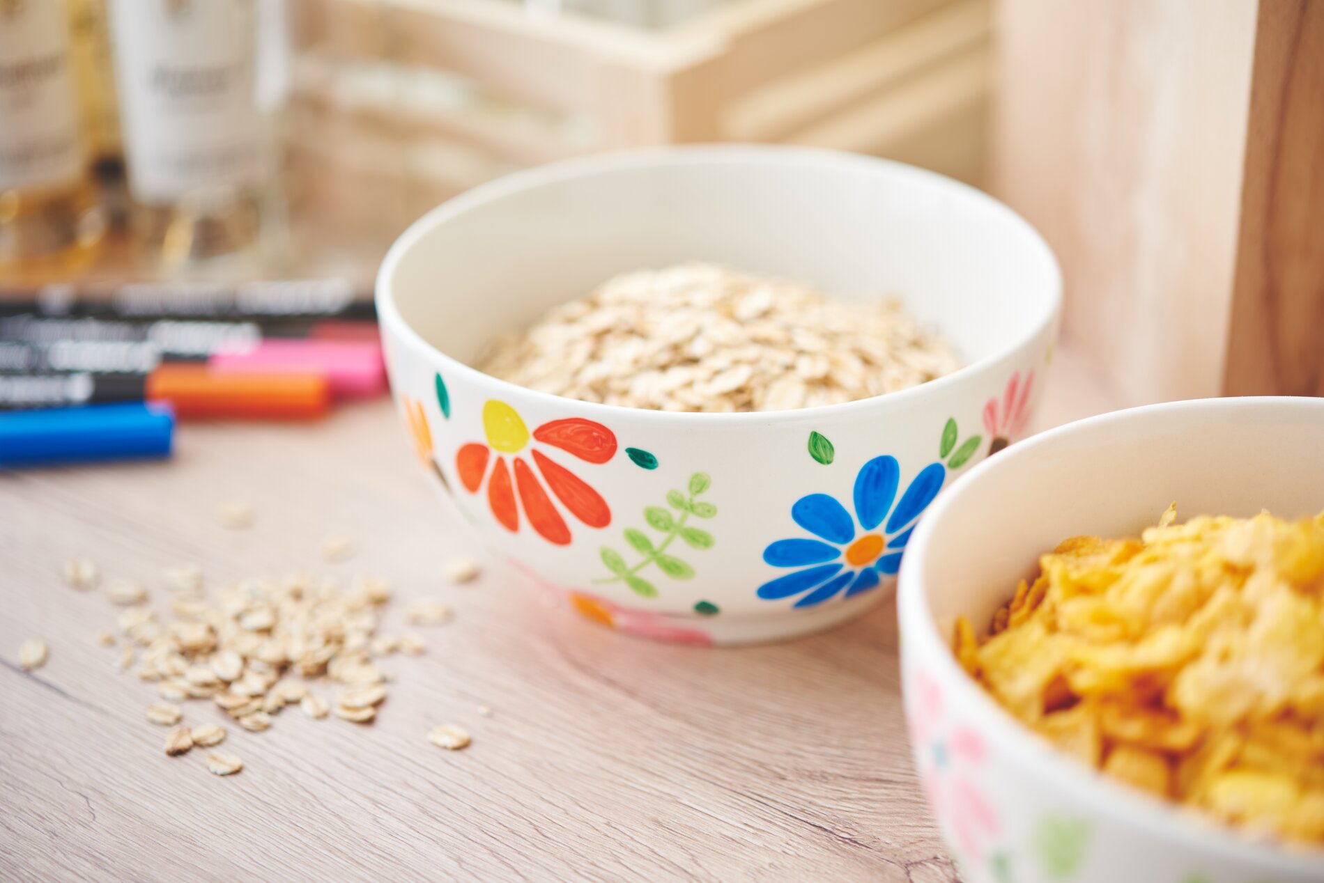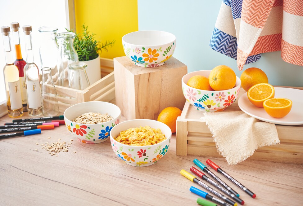 Nyní přichází na řadu kreativní část! Vezměte si porcelánové pastelky a začněte misky zdobit různými květy a listy podle svého přání. Popusťte uzdu své fantazii a navrhněte motivy podle svého vkusu. Před přímým nanesením na papír si to můžete vyzkoušet, abyste se ujistili, že požadovaný design dokážete dokonale realizovat.