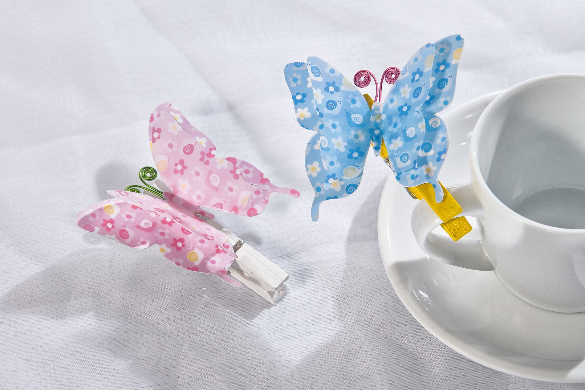 Tito roztomilí motýlci jsou pěknou malou dekorací, kterou lze vyrobit velmi rychle. Můžete je použít k ozdobení velikonočního keře, přidat barevný nádech na konferenční stolek a díky praktické dřevěné sponě je můžete připevnit i na lehký voňavý závěs.