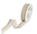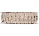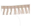 Výjimečný lem s třásněmi o délce cca 7 m a šířce cca 25 mm ze 100% polyesteru. Stuha nebledne ani nemění barvu a je vhodná i pro venkovní použití. Před použitím odstraňte upevňovací pásku.