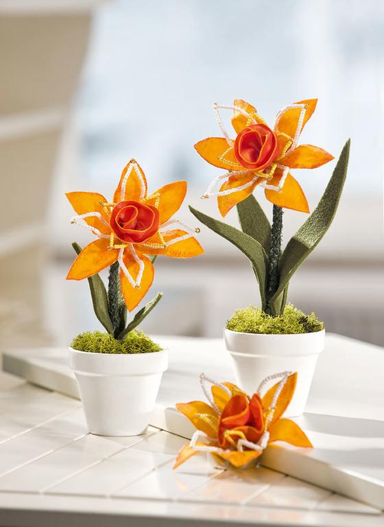 Hotovou květinu vlepte do hliněného květináče.