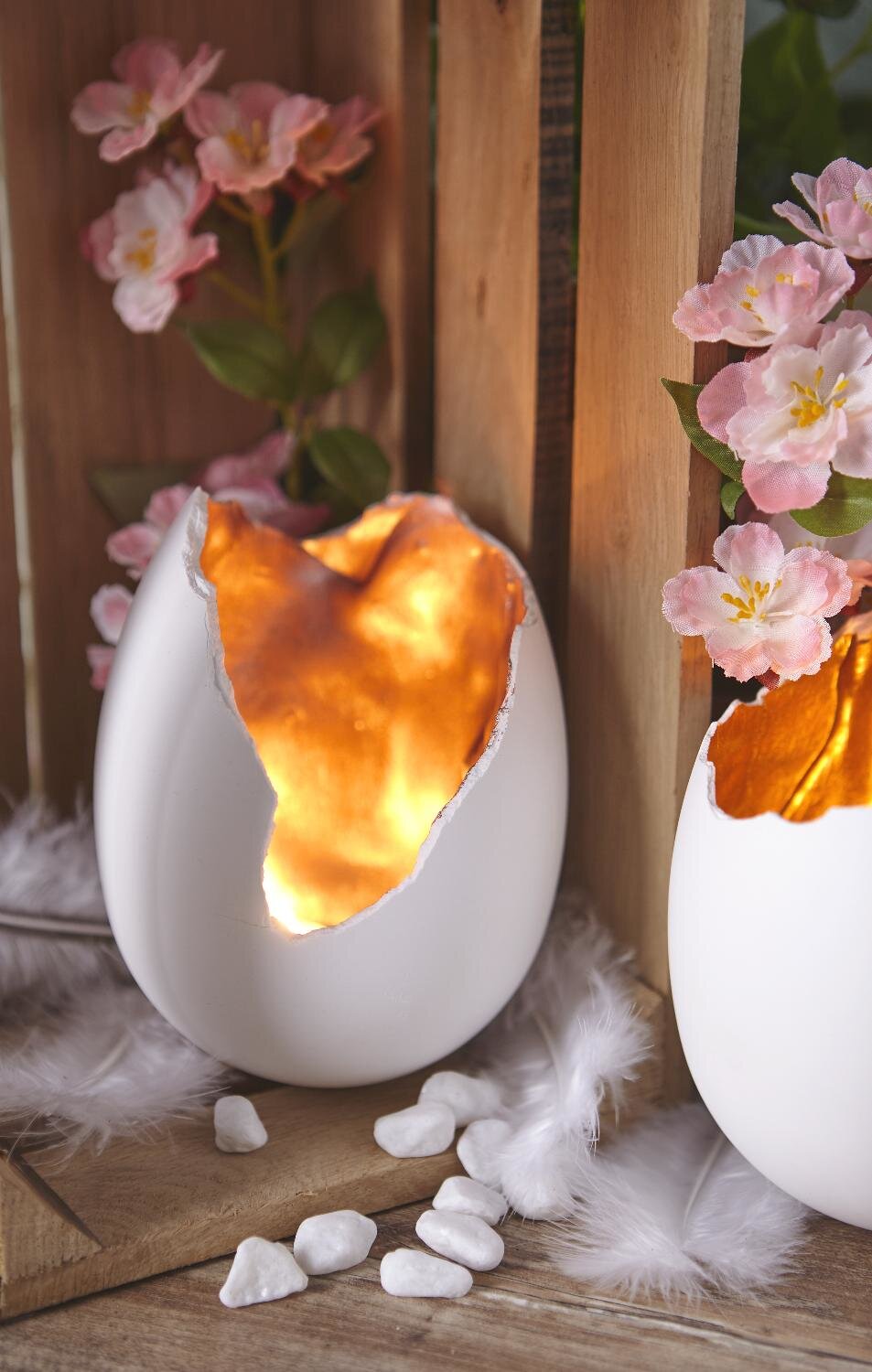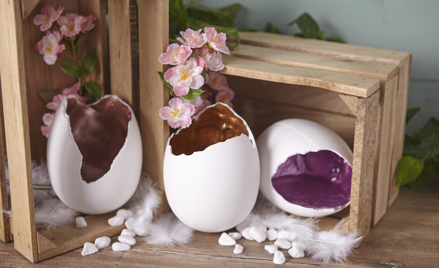 Přibližně po 30 minutách budou všechny vrstvy odlévací hmoty dostatečně ztuhlé, aby bylo možné ji z akrylového vejce vyjmout. Chcete-li vejce z formy uvolnit, lehce s ní poklepejte o stůl. Všimněte si, že se vajíčko pomalu rozděluje. Nyní můžete v případě potřeby okraje odlomit, aby dinosauří vejce byla ještě vizuálně přitažlivější.