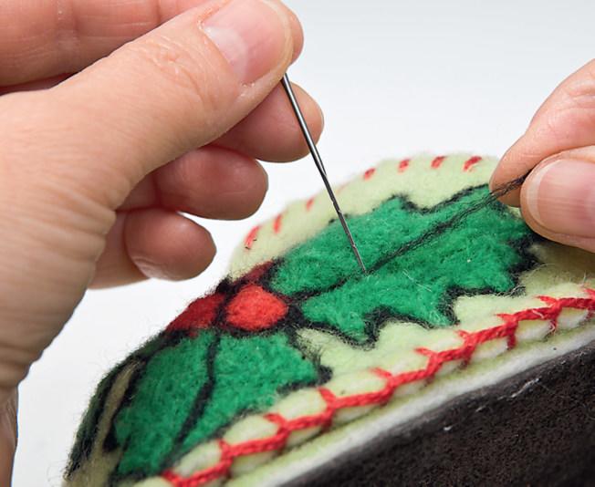 Sestavte jednotlivé části bačkor a spojte je prošoupacím stehem.